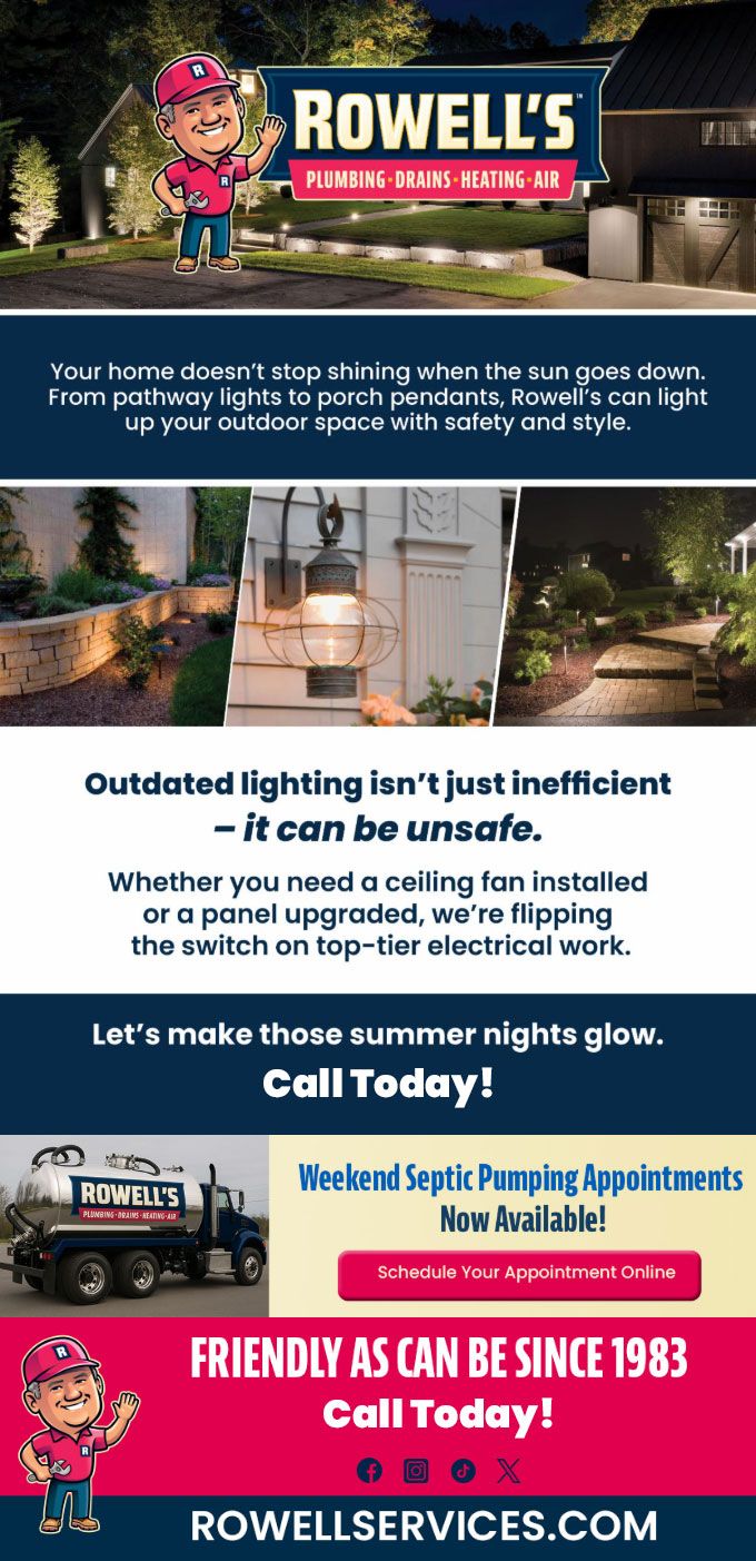 Your home doesn't stop shining when the sun goes down. From pathway lights to porch pendants, Rowell's can light up your outdoor space with safety and style.